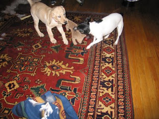 any ambition of creating room by room pottery barn catalogue stills, have been eclipsed by a version of feng shui sponsored by petsmart. and as new "parents", we are 'born again' as hirsute sasquatches; the conversion is complete. should dementia set in before menopause, or alcohol impedes my ability to locate the fridge, a permanent hansel and gretel installation plots swift passage to the pinot grigio, by way of chewable pig ears/saliva marinated rope/equally saturated puppy paraphernalia.